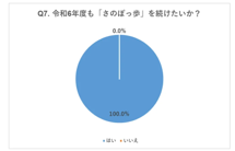 これまで紙ベースでの健康マイレージ事業では、年間1,000人未満の登録でしたが、「さのぽっ歩」では今年3月末時点での登録者数が6,000人を超えており、 利用者アンケートでは回答者全員が次年度も「さのぽっ歩」を続けたいと回答しております。